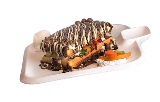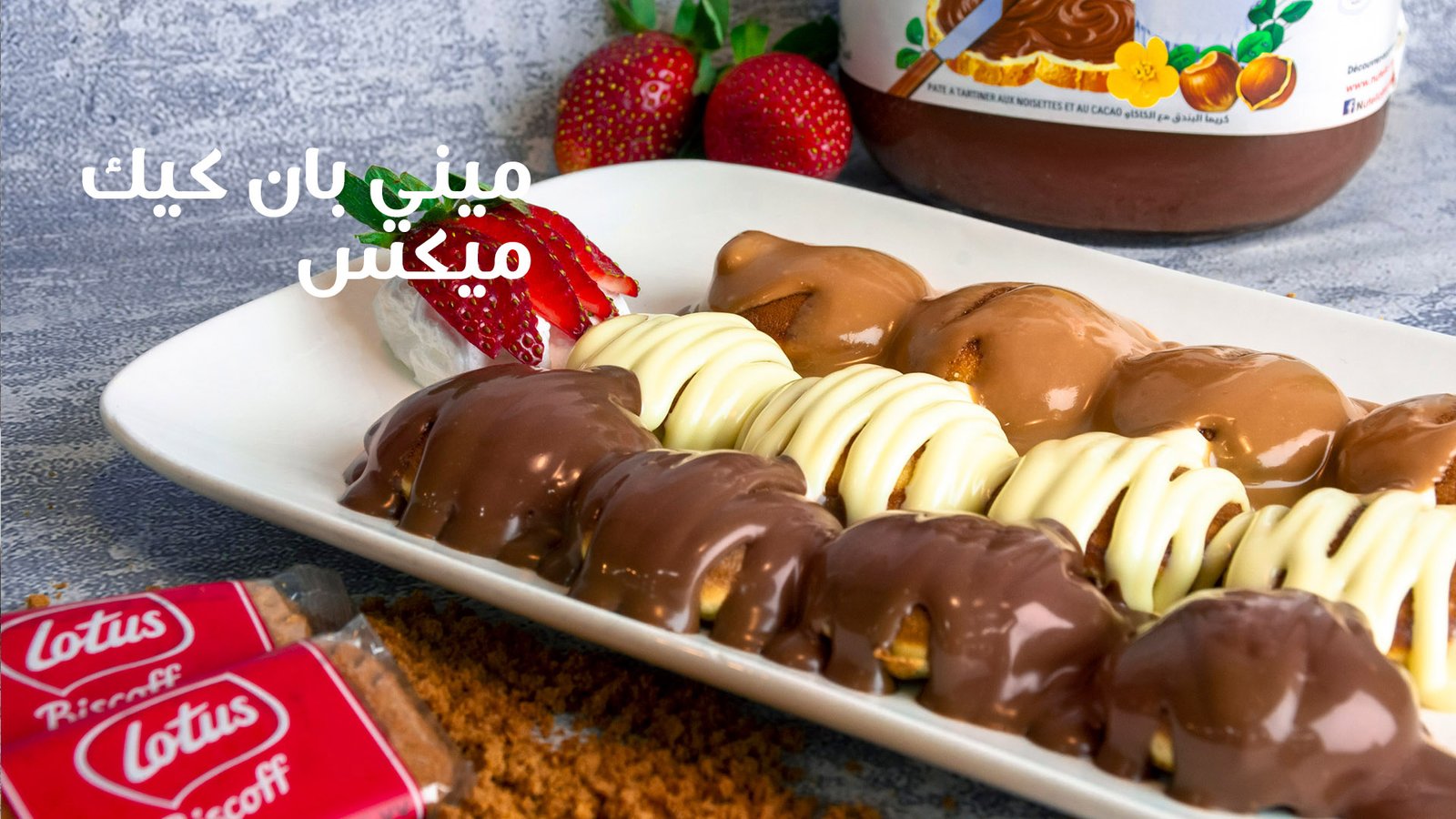 Twelve pieces of mini pancakes dipped in three flavors of chocolate (Lotus Chocolate and White Chocolate)