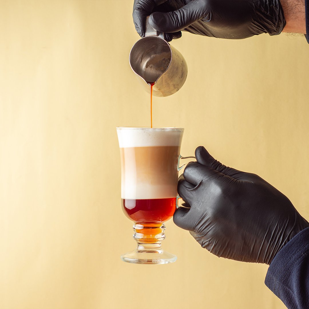 Single Shot Espresso with Milk Foam & Evaporated Milk & One Flavor : Vanilla Caramel Hazelnut