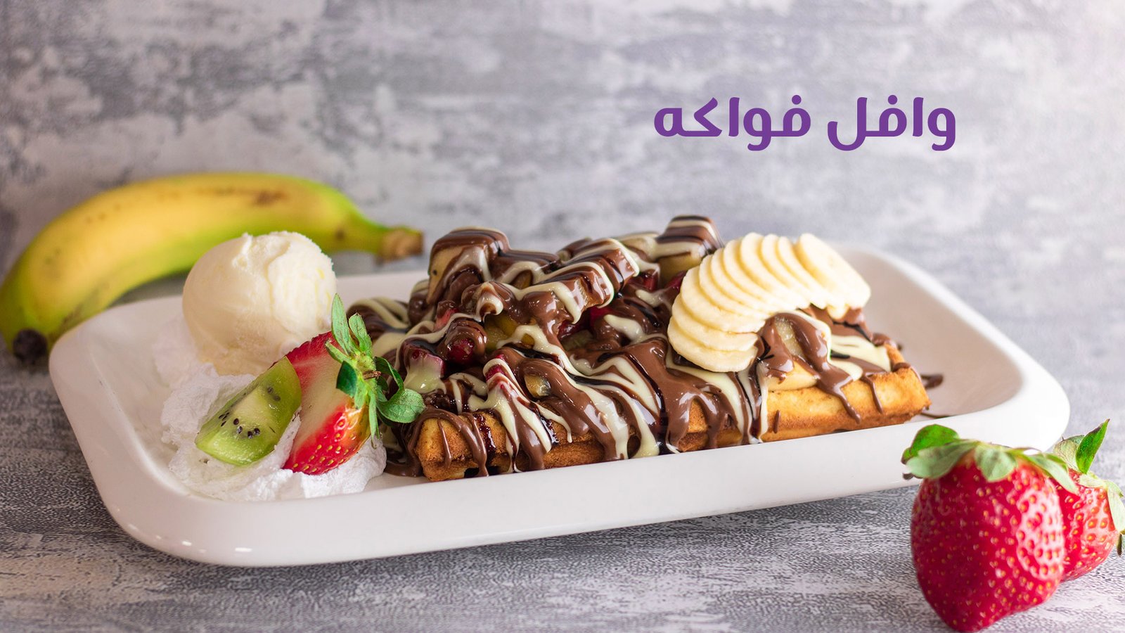 Hot waffle bar with chocolate and fruit pieces comes with a scoop of ice cream
